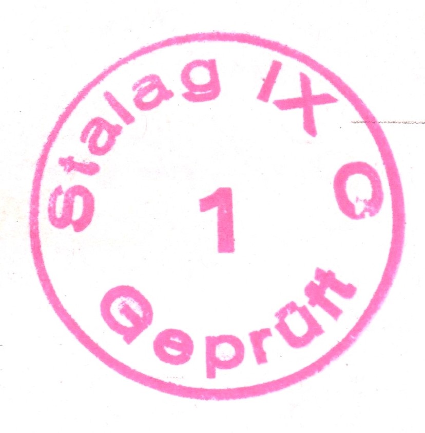 Dieser Beleg stammt von einem Angehörigen des "Arbeitskommando 195" und wurde in Stalag IX C geprüft vom Prüfer mt der Nummer "1":