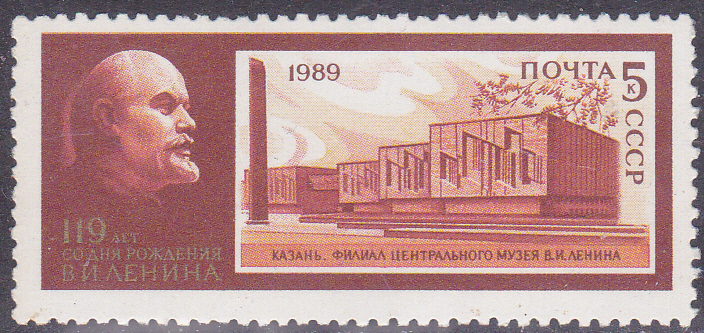 Auf der zweiten Marke der Serie (MiNr 6076) ist neben der Leninbüste von Georgij Neroda (1895–1983; Bildhauer) das Lenin-Museum in Uljanowsk abgebildet.