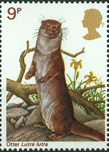 Diese 9 P-Marke der britischen Post (MiNr 748) zeigt ebenfalls einen "stehenden" Fischotter.