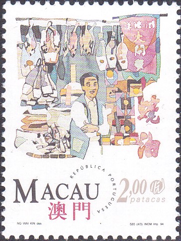 Macau MiNr. 765 zeigt ein Salzfischgeschäft: