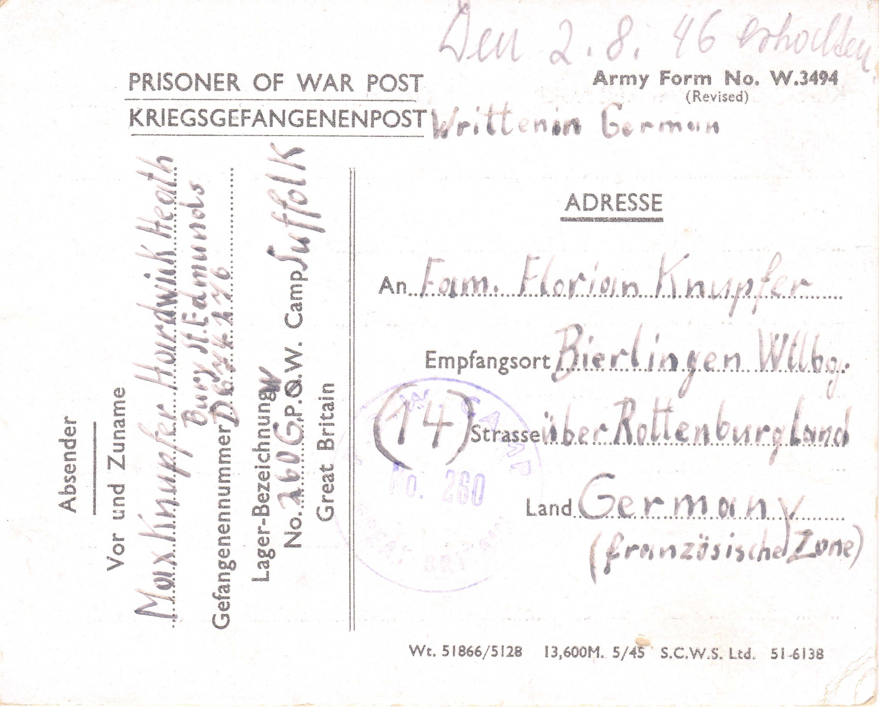 Foren-Übersicht Fragen und Diskussion Postgeschichte Zensurpost Zensurpost nach dem Zweiten Weltkrieg POW Camp 260 Suffolk