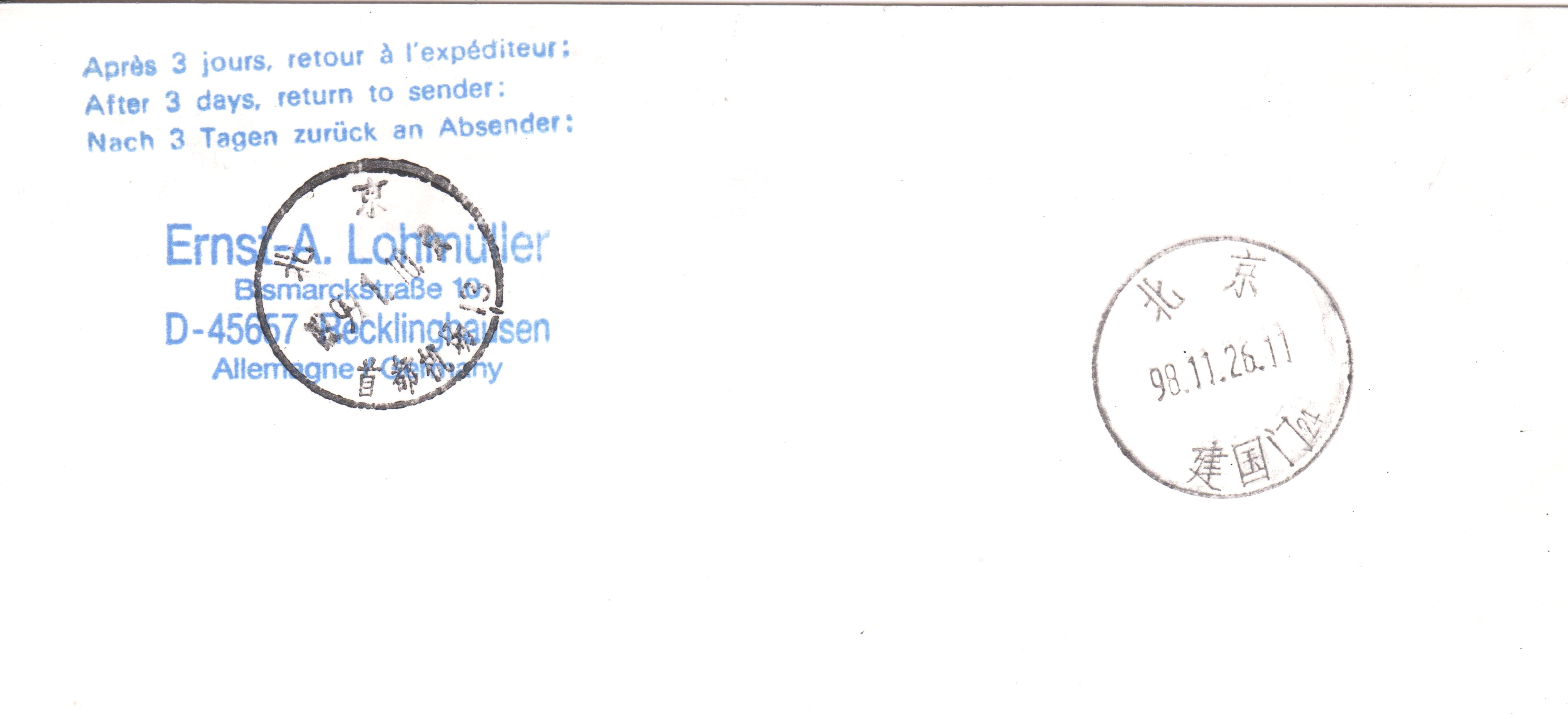 Dieser Beleg dokumentiert den Erstflug einer Swissair Boeing 747-357 von Genf über Zürich nach Beijing am 25.11.1998: