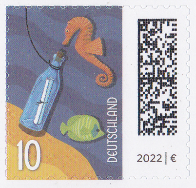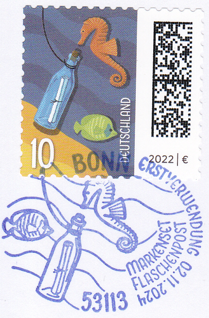 Am 2.11.2024 ist die Marke zu 10 Cent "Flaschenpost" auch als selbstklebende Marke in einem Folienblatt erschienen.