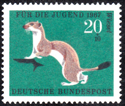 In der Serie "Für die Jugend" 1967 der Deutschen Bundespost wird auf der Marke zu 20+10Pf (MiNr 530) ein Hermelin oder Großwiesel (Mustela erminea) gezeigt.