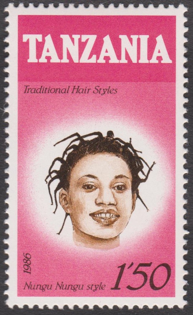 Diese Frisur aus Tansania, MiNr. 386, wird nach dem Stachelschwein = Nungu als "Nungu Nungu style" bezeichnet: