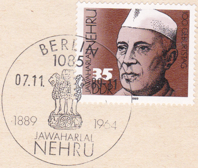 Zum 100. Geburtstag von Jawaharlal Nehru ist in der DDR diese Marke (MiNr 3284) mit seinem Porträt erschienen.