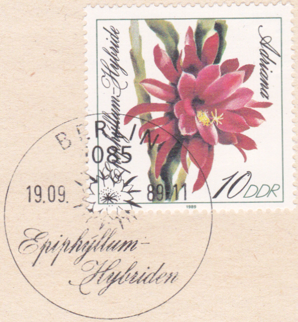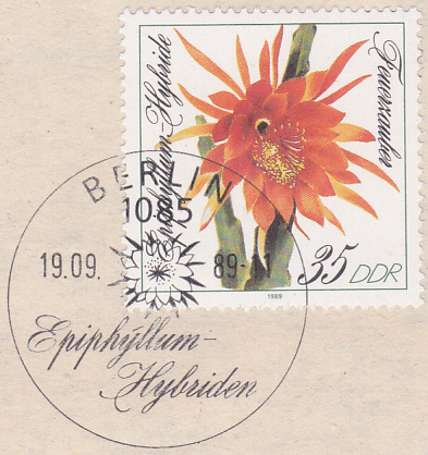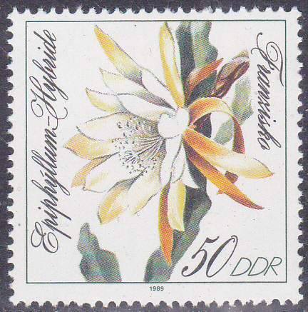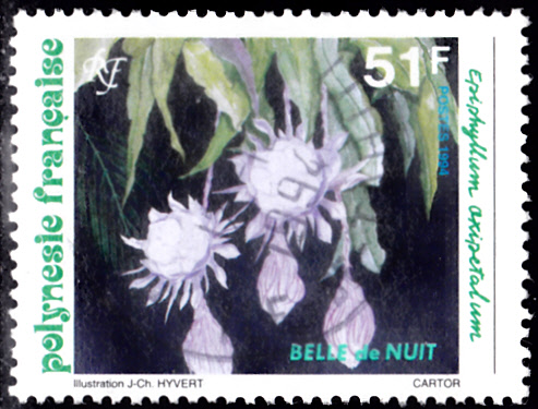 Auf dieser Marke aus Französisch-Polynesien (MiNr 663) sehen wir Blüten vom Epiphyllum oxypetalum.