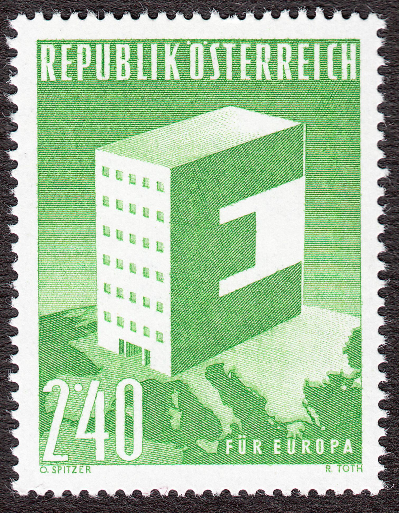 Der Entwurf dieser Marke stammt von Oskar Spitzer, der Stich von Rudolf Toth.