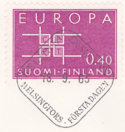 In Finnland ist eine Europamarke 1963 am 16. September 1963 mit dem Gemeinschaftsmotiv " Buchstaben „CEPT“ in Ornament" erschienen. Hier dieser Wert zu 0,40 M dunkellila, der in einer Auflage von 3 000 000 Stück erschien.
