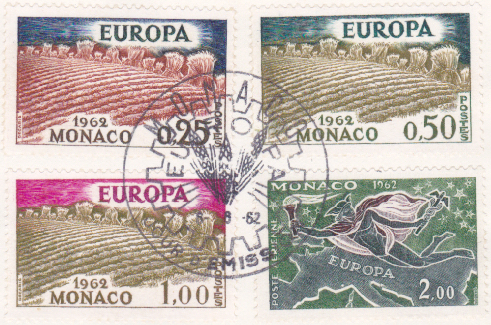 1962 erschien die erste Europamarke in Monaco. Einheitliches Motiv war ein vom Künstler Lex Weyer aus Luxemburg entworfener "Stilisierter Baum mit 19 Blättern". Im Jahr 1962 gaben 18 Länder insgesamt 39 Europamarken aus.