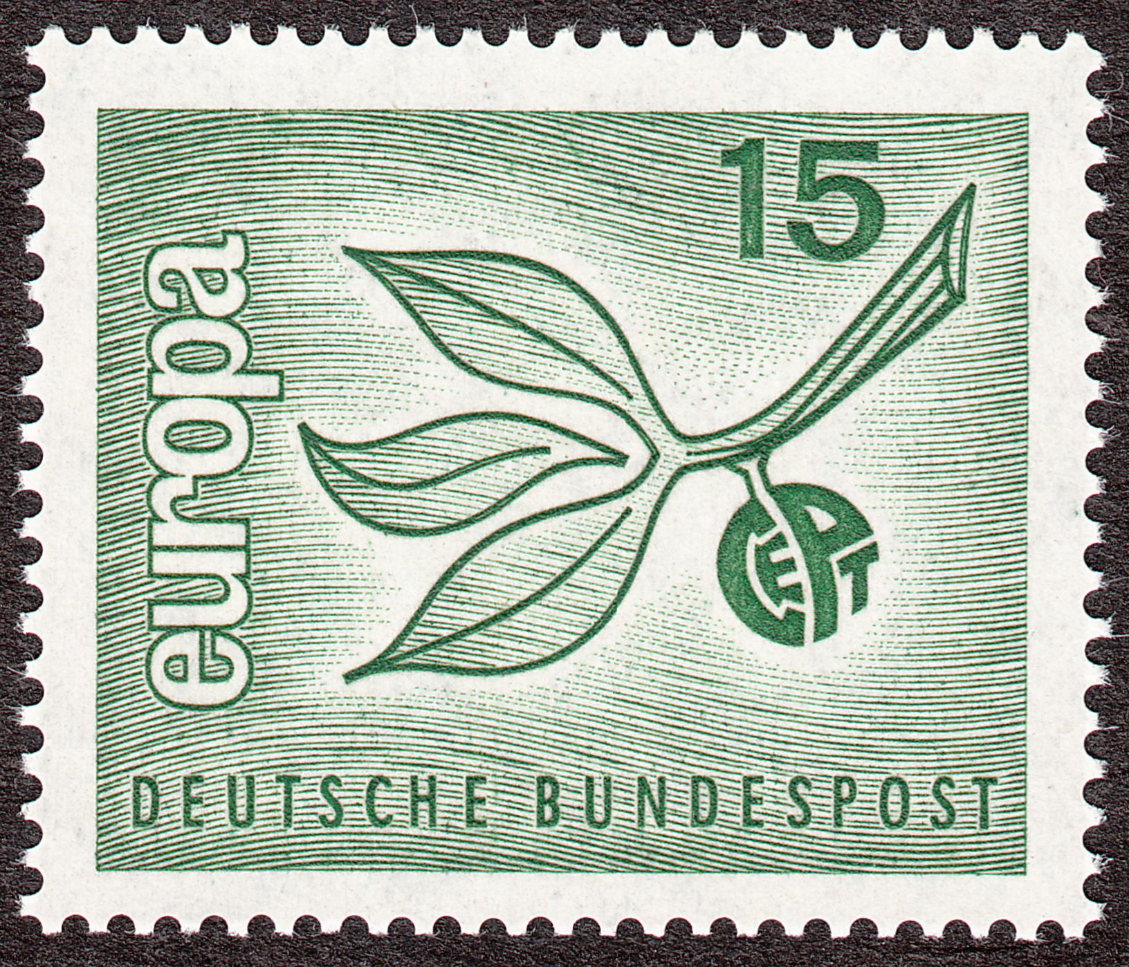 Am 27.09.1965 erschien in einer Auflage von 30 Millionen diese Europamarke der Wertstufe 15 Pfennig, katalogisiert als MiNr. 483: