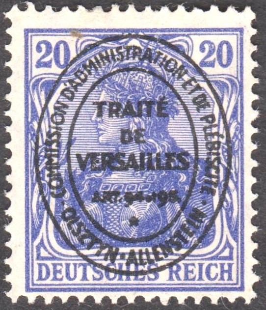 Deutsches Reich MiNr. 101 wurde mit einem schwarzen Buchdruck-Aufdruck im Hochoval versehen und ist katalogisiert als Deutsche Abstimmungsgebiete - Allenstein MiNr. 17: