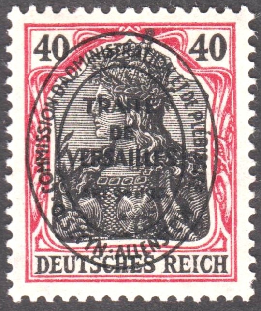 Deutsches Reich MiNr. 104 wurde mit einem schwarzen Buchdruck-Aufdruck im Hochoval versehen und ist katalogisiert als Deutsche Abstimmungsgebiete - Allenstein MiNr. 23: