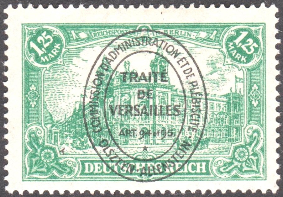 Deutsches Reich MiNr. 113 wurde mit einem schwarzen Buchdruck-Aufdruck im Hochoval versehen und ist katalogisiert als Deutsche Abstimmungsgebiete - Allenstein MiNr. 25: