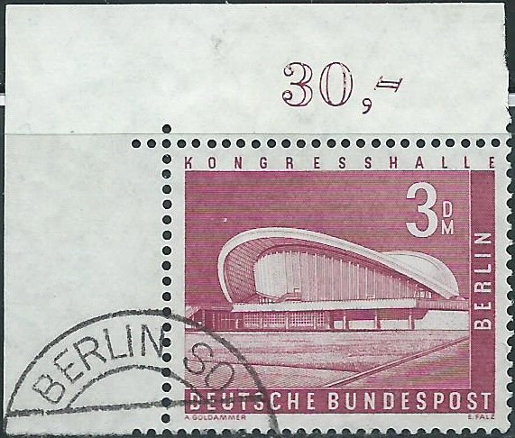 Und abschließend ein rechtes oberes Eckrandstück zu 3 DM, gestempelt in Berlin SO:
