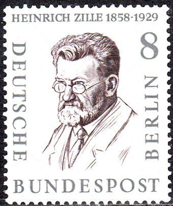 In dieser Serie ist am 10.1.1958 eine Marke zu 8 Pfennig mit dem Porträt von Heinrich Zille (1858 - 1929), satirischer Zeichner) erschienen. Hier zeige ich eine postfrische Marke.