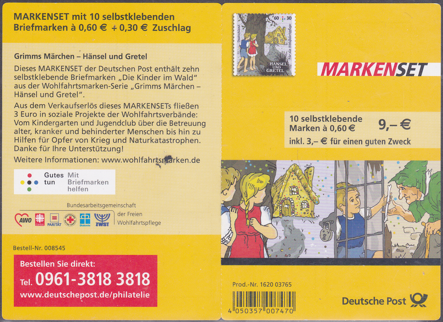 Zur selbstklebenden Wohlfahrtsmarke zu 60+30 Cent der Ausgabe 2014 mit dem Motiv zum Märchen "Hänsel und Gretel" zeige ich hier das Markenheftchen (MH-MiNr 96).