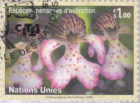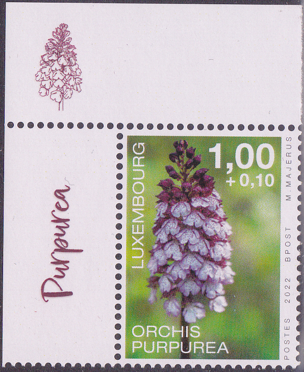 Dies Marke aus Ungarn (MiNr 3922 A) zeigt die Blüten des Purpur-Knabenkraut (Orchis purpurea).
