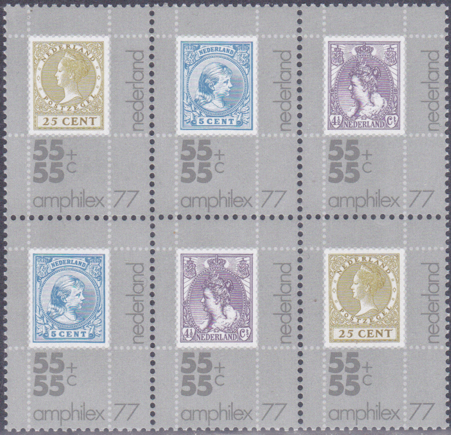 Dieser Sechserblock aus zwei waagerechten Zusammendrucken zweier Dreierstreifen zeigt was mit "alternierender Folge" im Bogen gemeint ist.