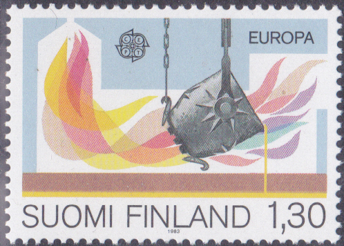 In Finnland erschienen die Europamarken 1983 am 2. Mai 1983 zum Gemeinschaftsthema "Große Werke des menschlichen Geistes". Hier die Marke zu 1,30 M, die eine Darstellung zum Schwebeschmelzverfahren für Kupfer zeigt. Die Marke erschien in einer Auflage von 8 000 000 Stück.