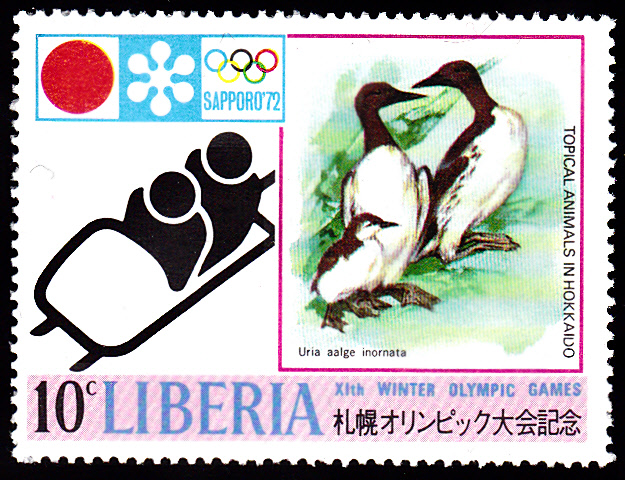 In Liberia erschien in einer Serie zu den Winterspielen 1972 diese Marke (MiNr 813 A ) mit einem Piktogramm für das Bobfahren.