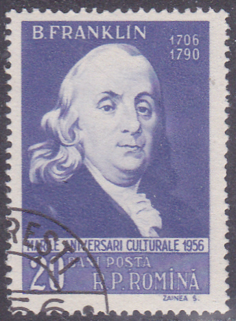 Aus Rumänien kommt diese Marke (MiNr 1604) mit einem Porträt von Benjamin Franklin. Sie erschien anlässlich seines 250. Geburtstages.