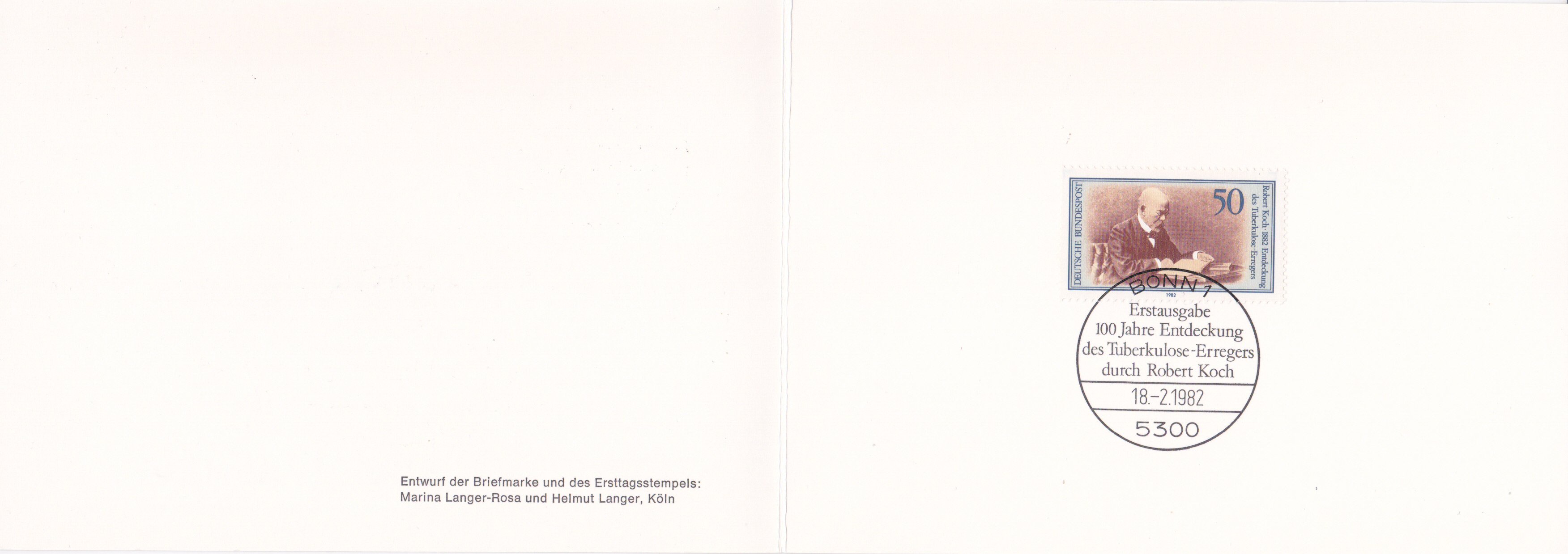 Ministerkarte mit der Marke der Deutschen Bundespost zum 100. Jahrestag der Entdeckung des Tuberkulose-Erregers durch Robert Koch (MiNr 1122).