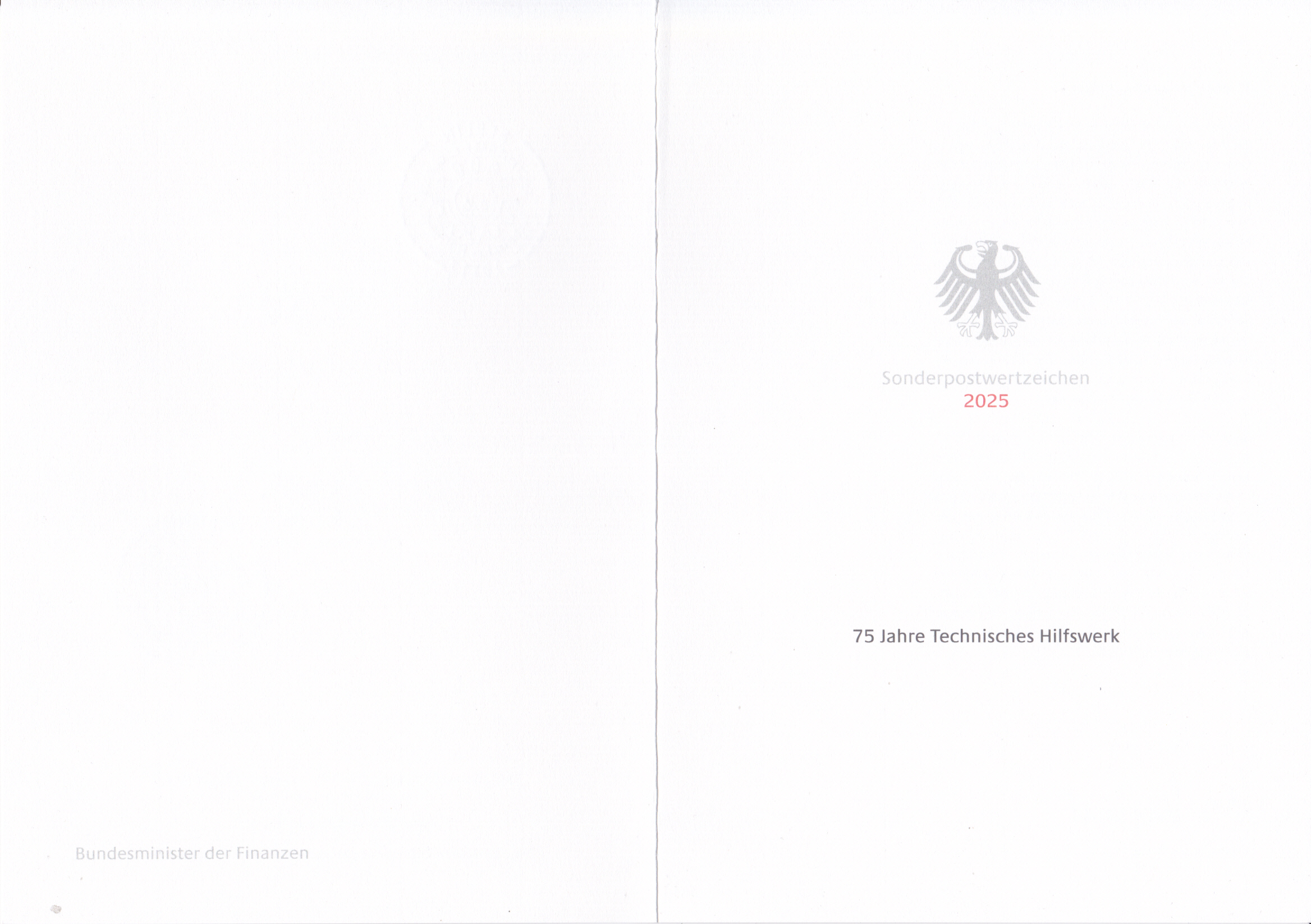 Klappkarte des Vorstandsvorsitzenden der Deutschen Post AG mit der Marke "75 Jahre Technisches Hilfswerk" (MiNr 3922) und dem Ersttagsonderstempel Bonn.