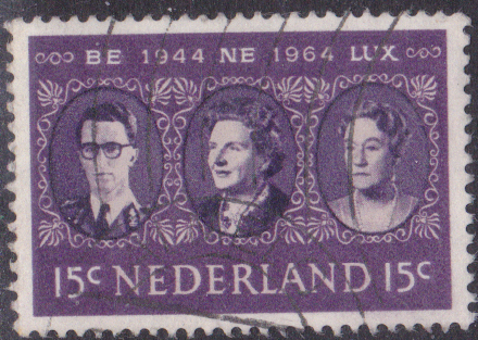 Zum Jubiläum 20 Jahre Zollunion "BENELUX" erschien in den Niederlande diese Marke (MiNr 829) mit den Porträts von König Baudouin von Belgien, Königin Juliana der Niederlande und Großherzogin Charlotte von Luxemburg.