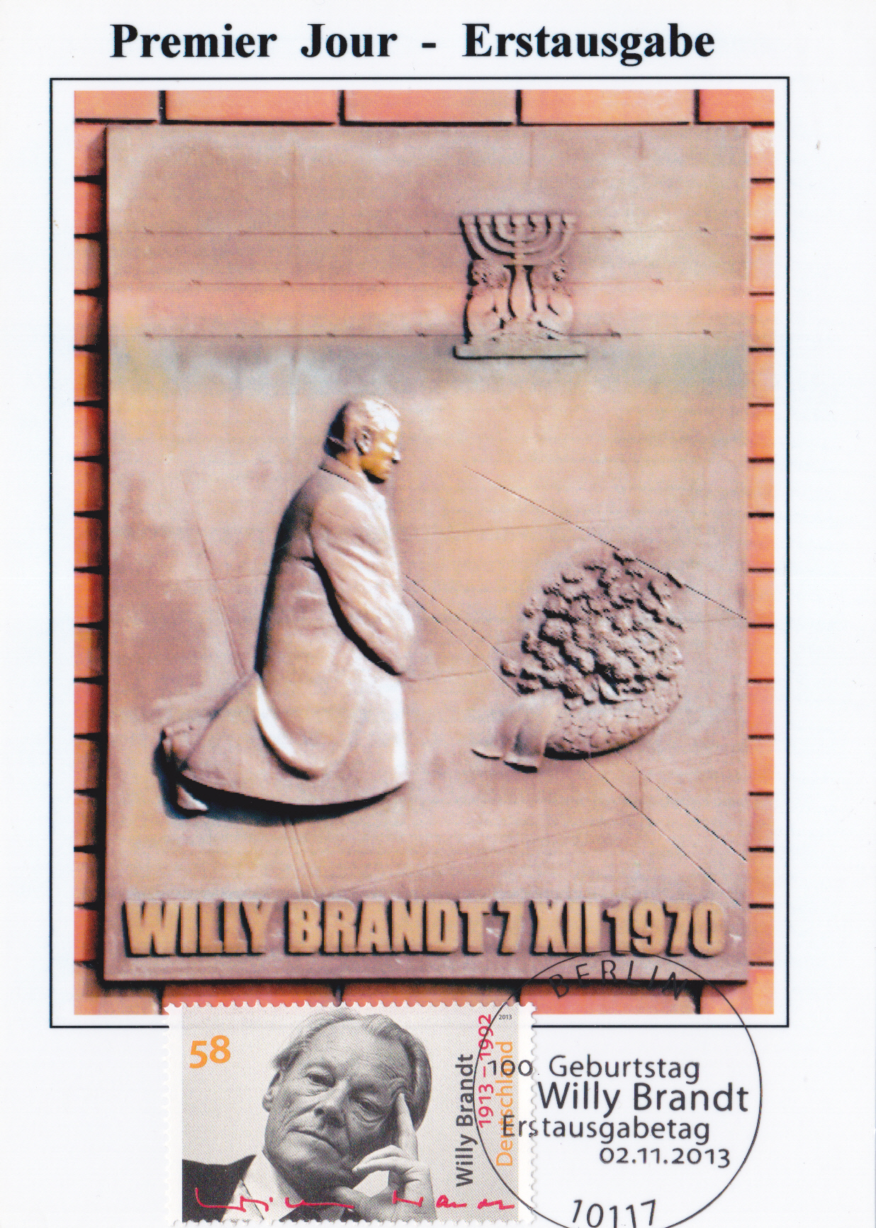 Maximumkarte mit der Marke (MiNr 3037) zum 100. Geburtstag von Willy Brandt und mit dem Ersttagsonderstempel Berlin.