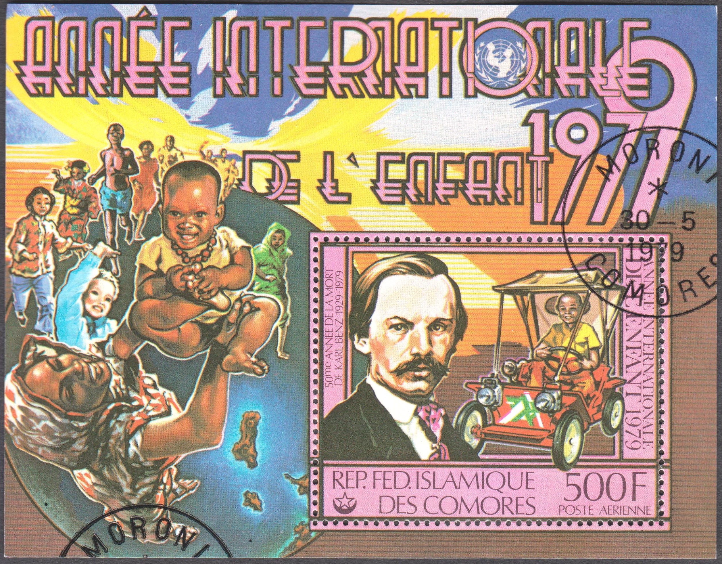 Die hier bereits vorgestellte Marke der Deutschen Bundespost (MiNr 364) mit der Abbildung des Benz Motorwagen und mit dem Namenszug von Carl Benz wurde auf diesem Brief zusammen mit der zweiten Marke (MiNr 363) mit dem ersten Motorwagen von Gottlieb Daimler zusammen am Ersttag mit dem Ersttagsonderstempel aus Bonn gestempelt.