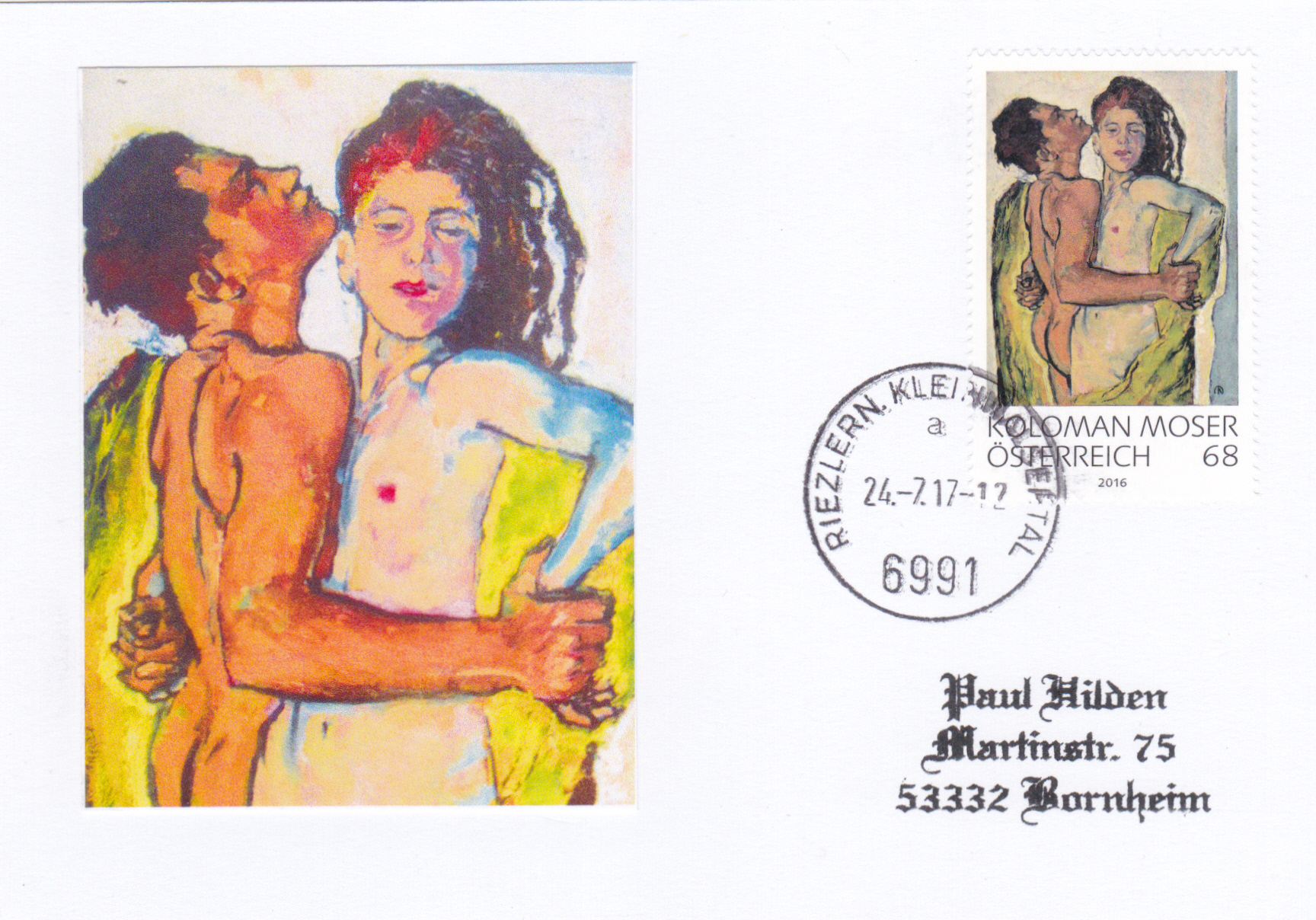In der Serie "Moderne Kunst in Österreich" ist in Österreich diese Marke (MiNr 3283) mit dem Gemälde "Liebespaar" von Koloman Moser erschienen.