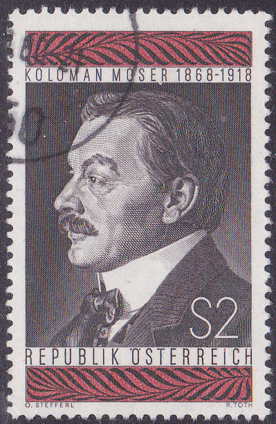 Zum 50. Todestag von Koloman Moser erschien in Österreich eine Marke (MiNr 1271) mit seinem Porträt.