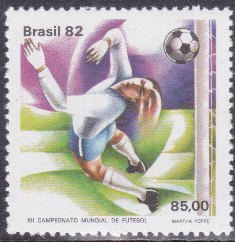 In Grenada ist zur WM 1982 in einer Serie diese Marke (MiNr 1124) mit einem Torwart, der Flagge Deutschlands und einem Teil eines Fußballs erschienen.