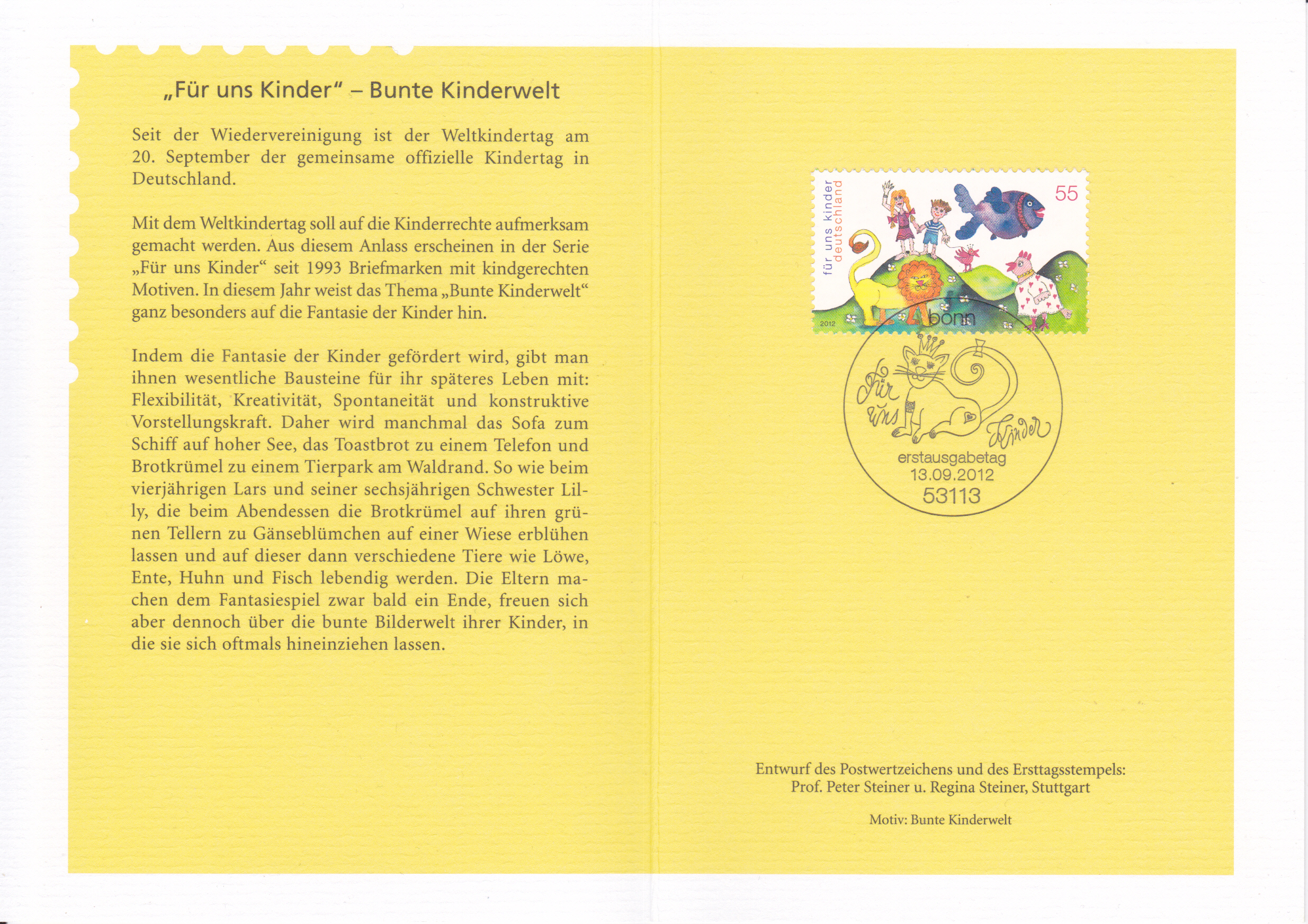 Klappkarte des Vorstandsvorsitzenden der Deutschen Post AG mit Marke der Deutschen Post (MiNr 2952) "Für uns Kinder" und dem Ersttagsonderstempel aus Bonn.