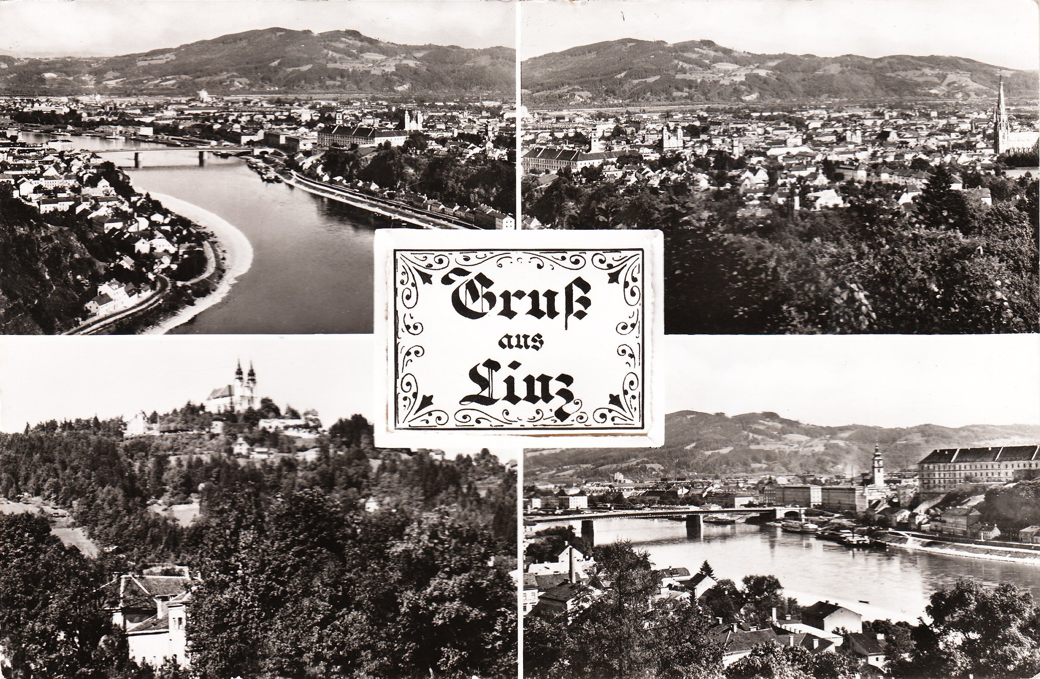 Das Feld "Gruß aus Linz" kann man nach oben aufklappen und dann kommt ein darunter verborgenes Leporello zum Vorschein: