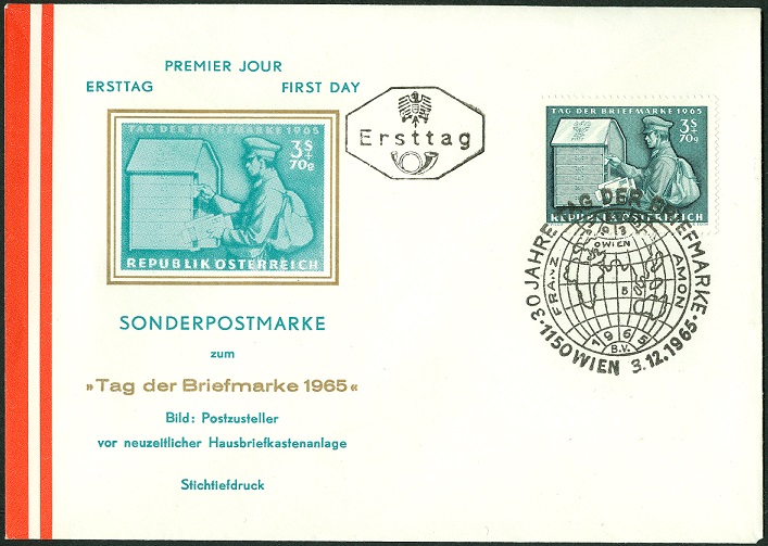 Und ein weiterer Umschlag zum Thema "Tag der Briefmarke 1965" in Österreich.