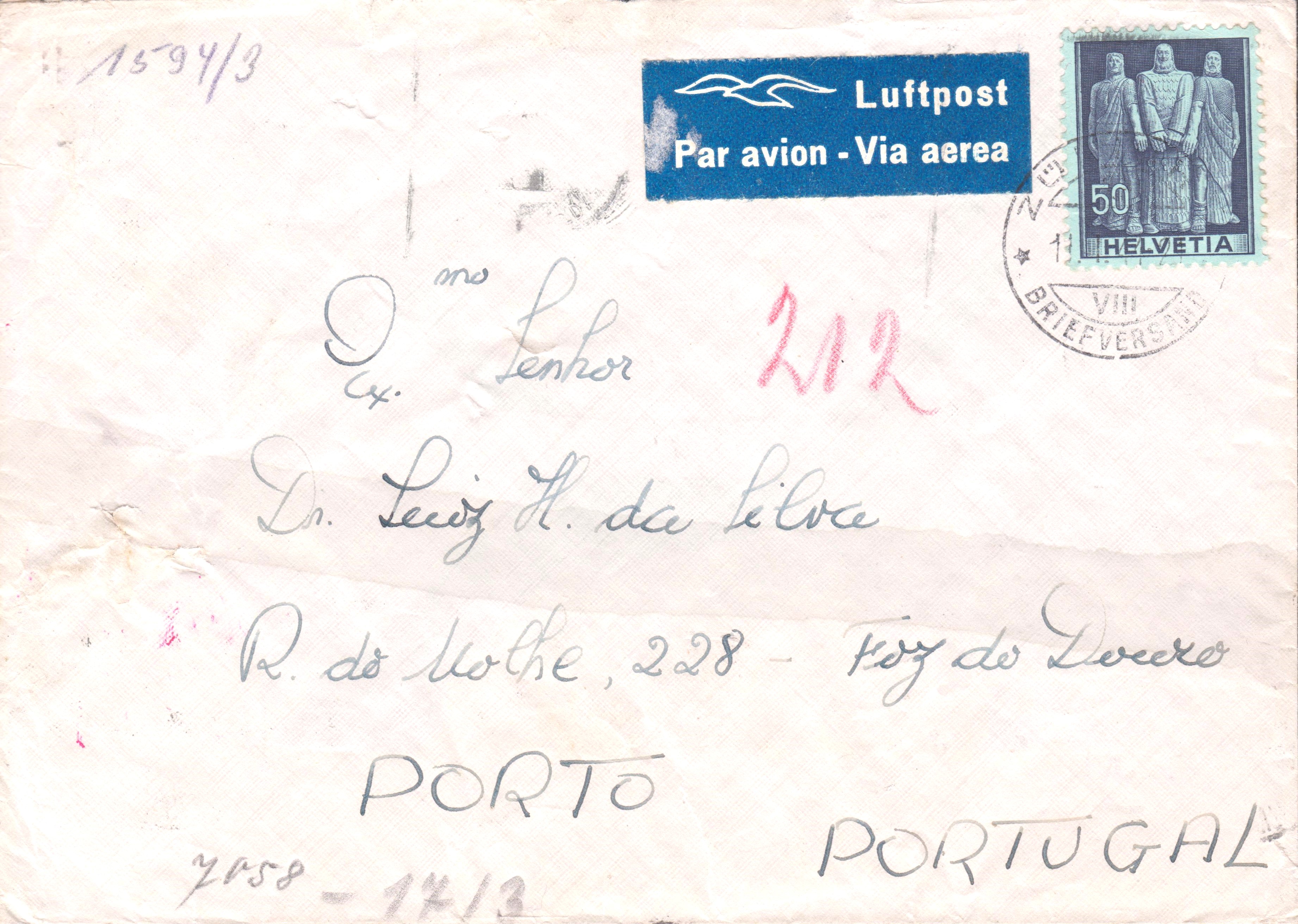 Luftpost aus der Schweiz nach Portugal wurde zum Teil der ABP Berlin zugeleitet: