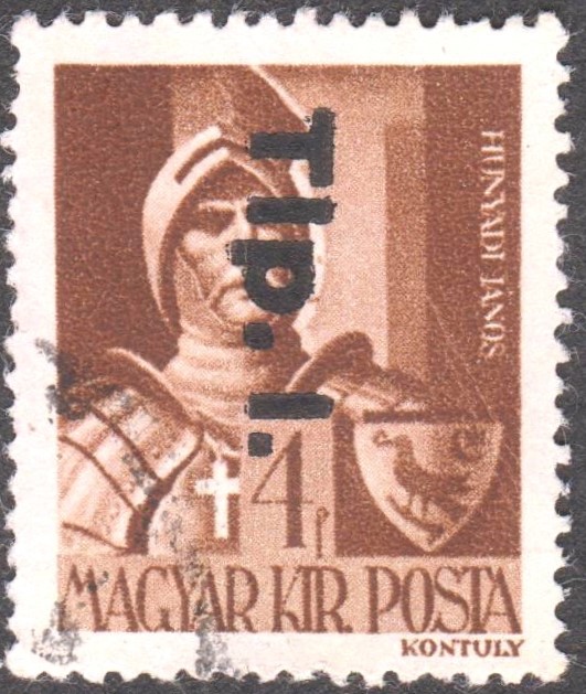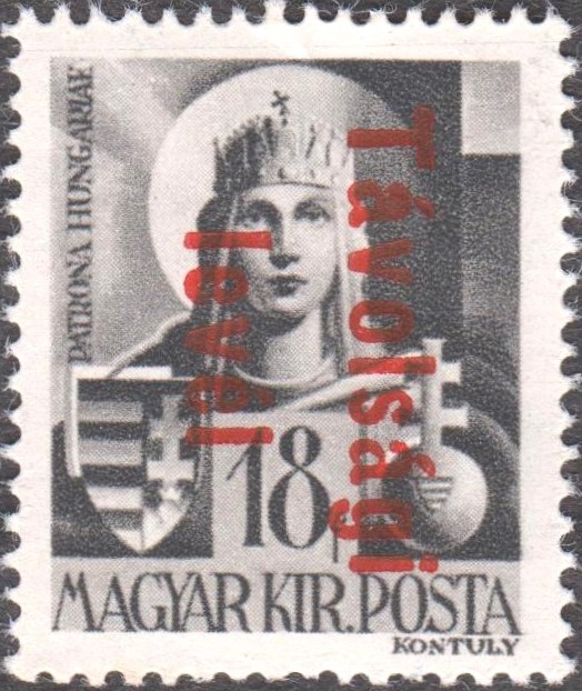 Diese Freimarke für den Inlandsverkehr, Ungarn MiNr. 875, erschien am 01.05.1946, indem die Freimarke Ungarn MiNr. 755, 24 f violettpurpur, mit einem Aufdruck in Rot "Ajánlás" (= Einschreibbriefe) versehen wurde:
