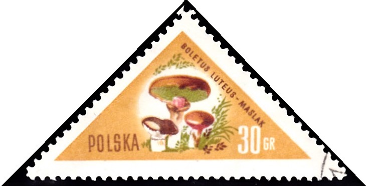 Auf dieser Marke aus Polen (MiNr 1094) ist ein Butterpilz (Suillus luteus) zu sehen.