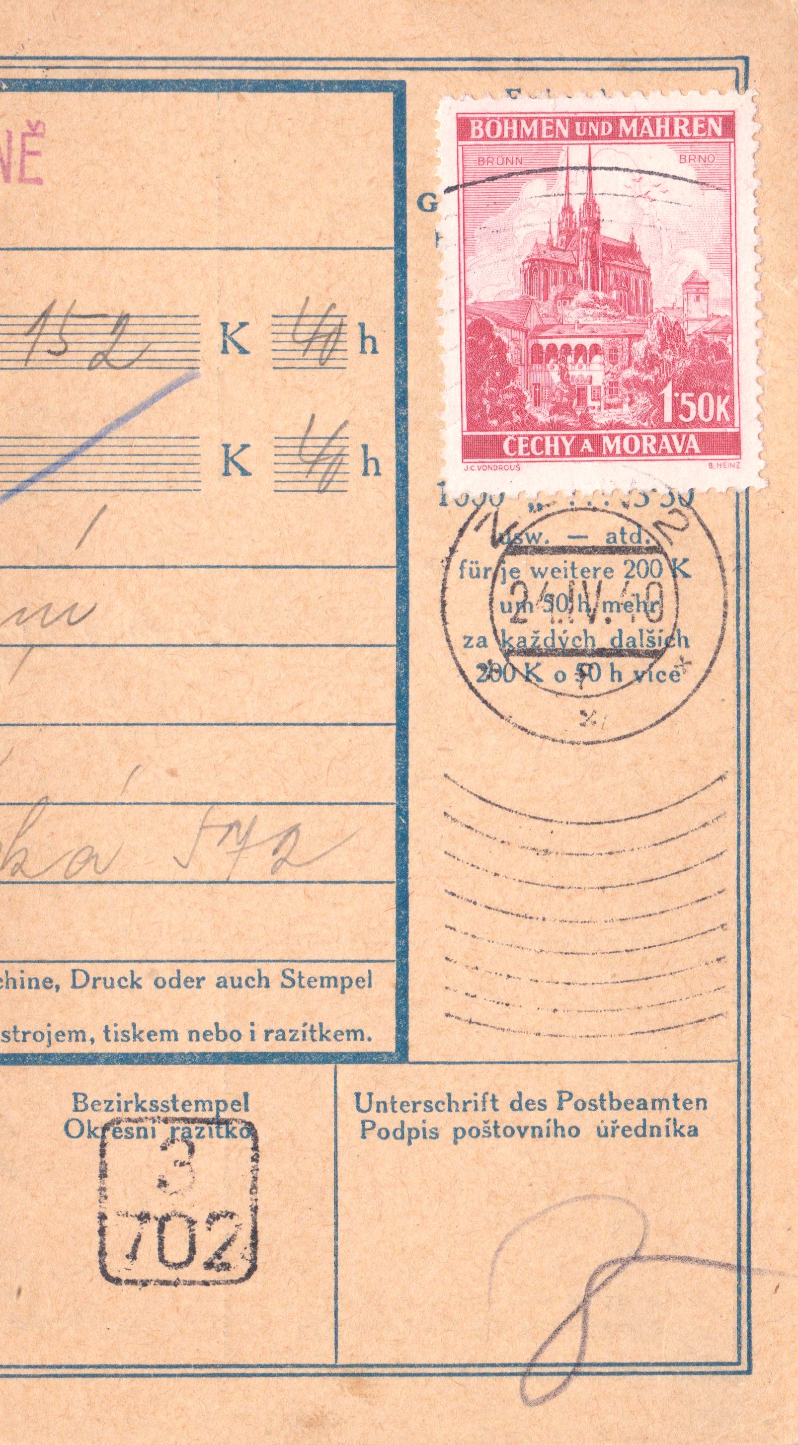 Die Burg Karlštejn (deutsch Karlstein) ist auf der Marke zu 50 H (MiNr 26) abgebildet.