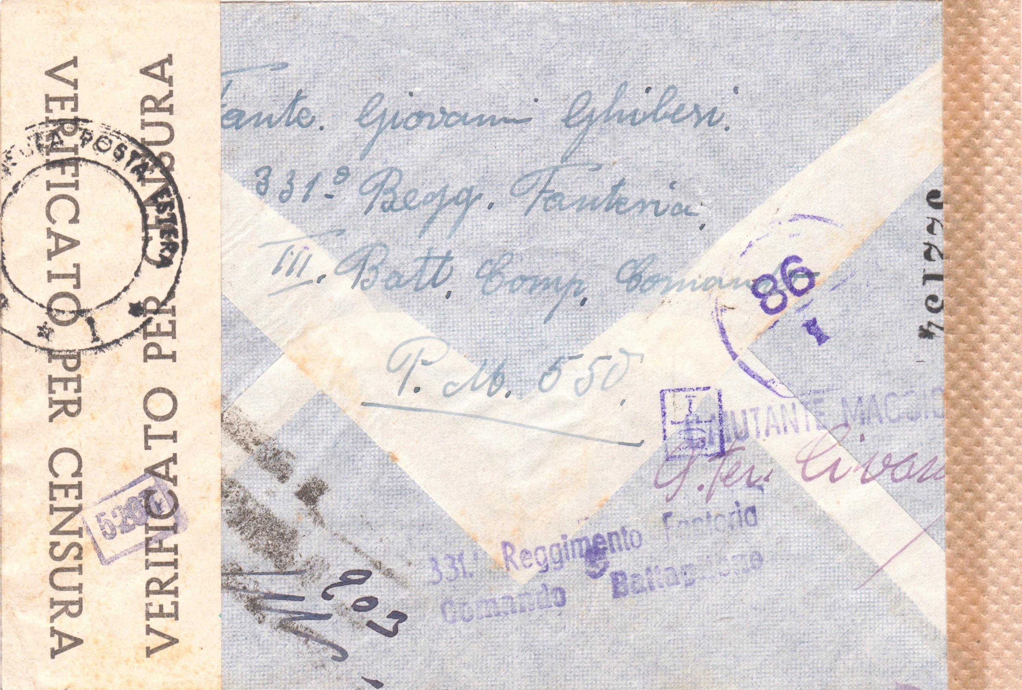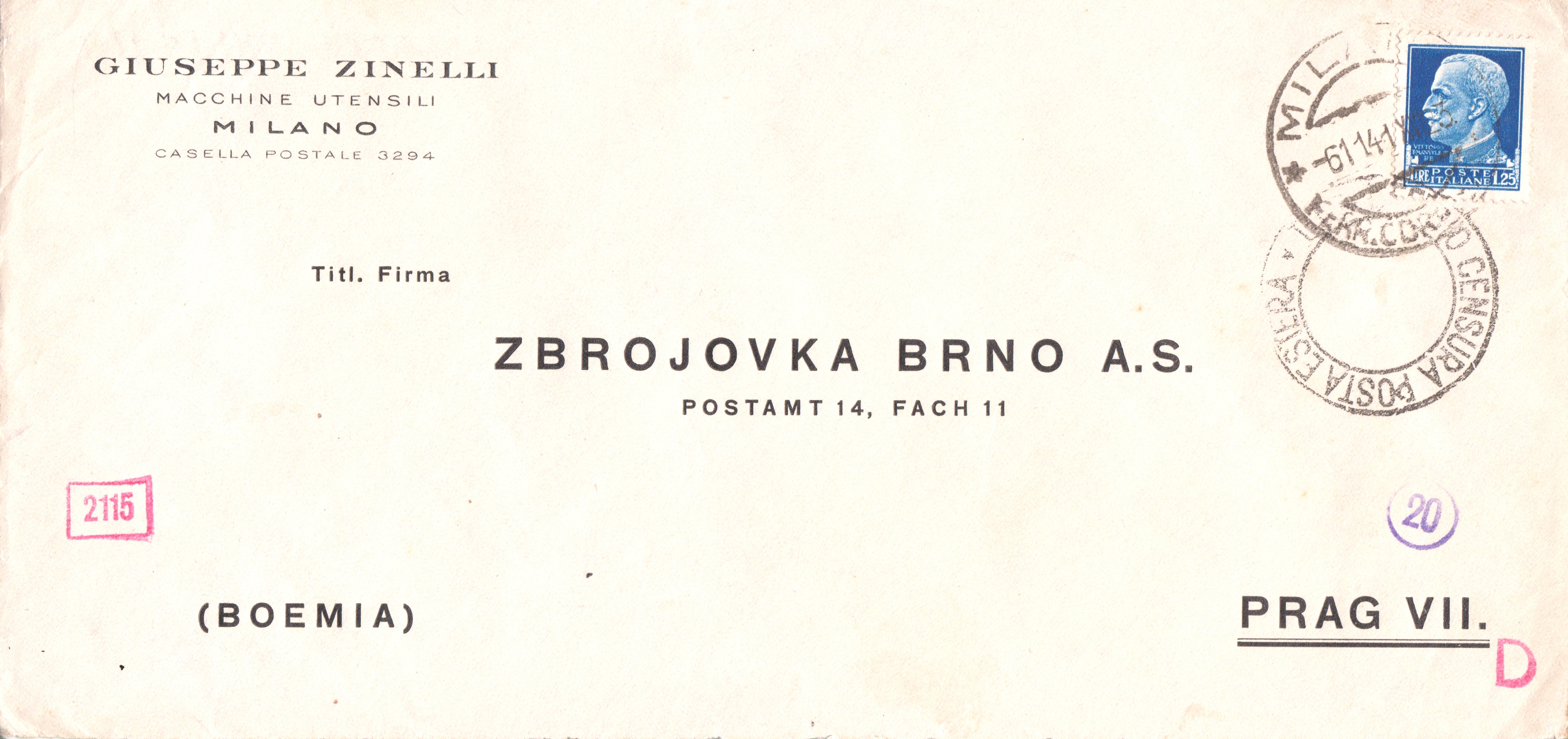 Der Brief wurde der für Post aus Italien ins Deutsche Reich zuständigen ABP München zugeleitet, wo er rückseitig geöffnet und nach erfolgter Prüfung mit einem Verschlußstreifen, Landsmann DV3.2, wieder verschlossen wurde, was ein Handprüfstempel, Landsmann DP2.3.1, dokumentiert.