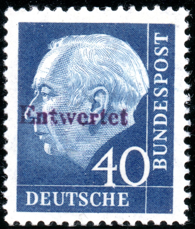 So wurde der 40-Pfg.-Wert Heuss II in geänderter Farbe (schwärzlichblau) nur für diese Versuchszwecke gedruckt.