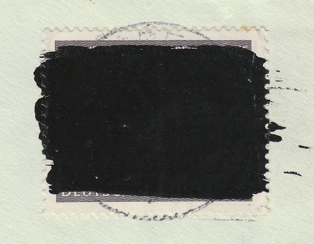 Die MiNr. 479 wurde in diesem Falle von der Post der DDR durch Übermalung mit Farbe Mattgrau unkenntlich gemacht, MiNr. 479 Pk I c.