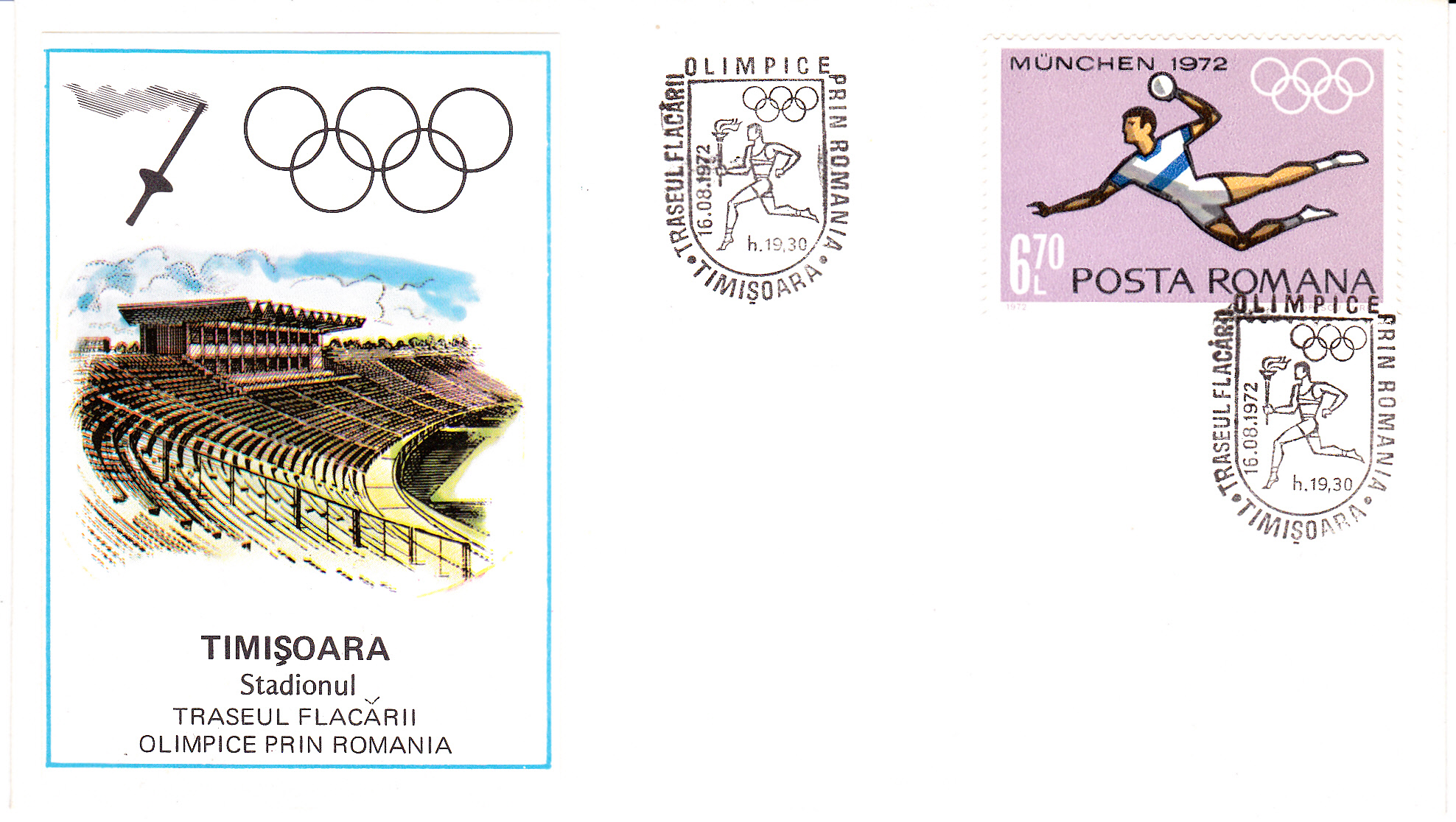 Am 16.8.1972 um 19.30 Uhr erreichte der Fackellauf Timișoara. Timișoara ist eine Stadt im westlichen Rumänien und die Hauptstadt des Kreises Timiș. Sie ist das historische, wirtschaftliche und kulturelle Zentrum des Banats. Die Stadt hatte 2011 nach Bukarest und knapp hinter Cluj-Napoca die drittgrößte Einwohnerzahl des Landes auf.