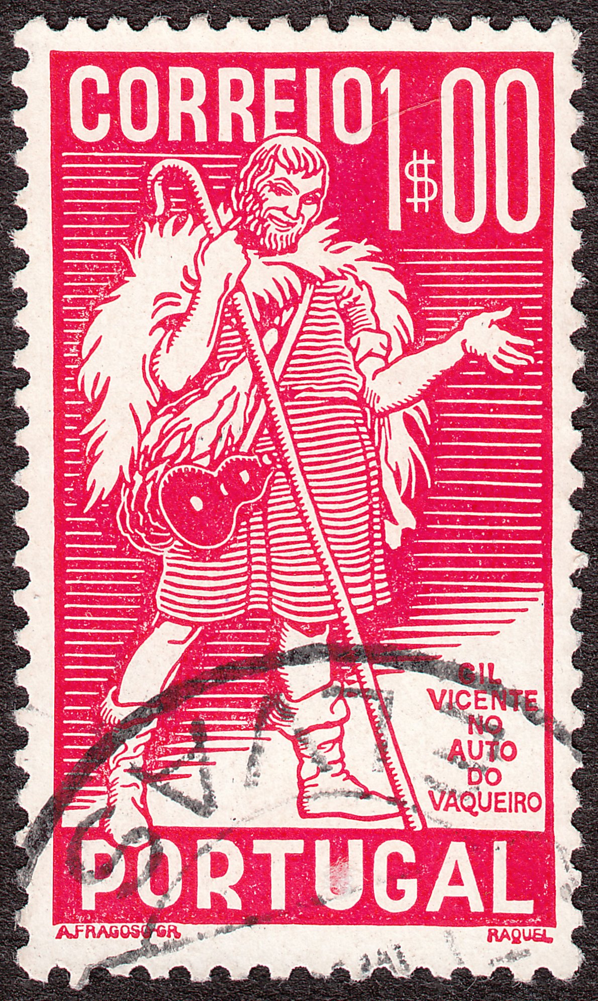 Hier ein Schäfer aus Portugal, gut erkennbar an seinem Schäferstab sowie seinem Umhang, der aus einem Schaffell besteht: